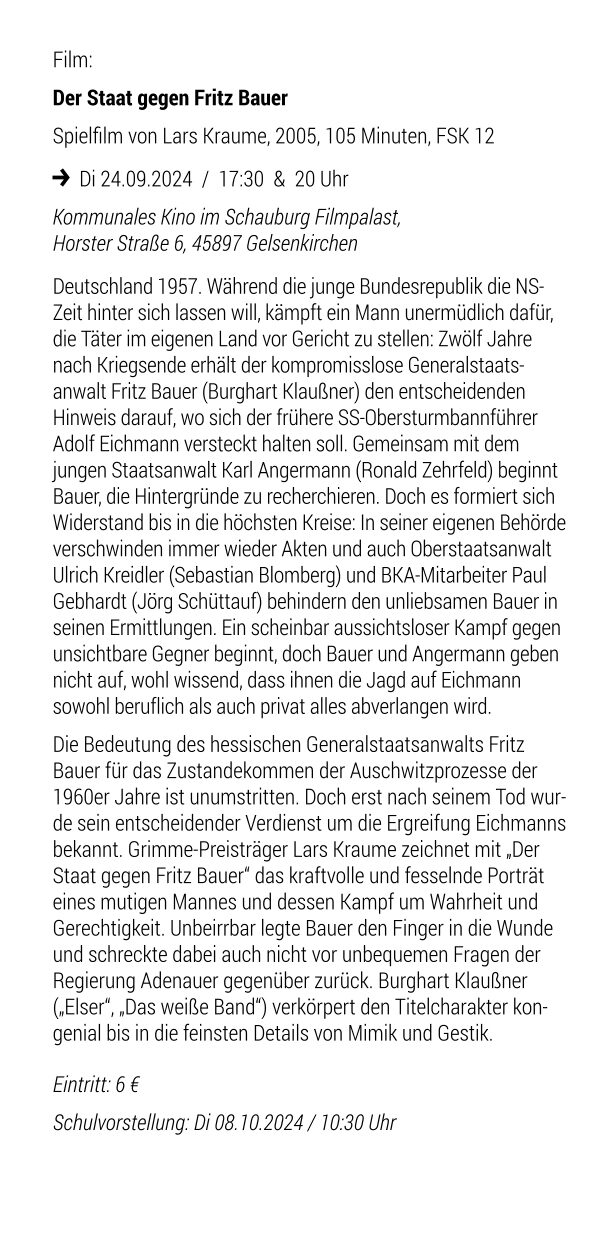 | Bei der Präsentation unserer Publikation feiga & george. das verschwinden der jüdischen familie zając in wien im Essener „Church“ haben wir insgesamt 400 € gesammelt. Wir haben dieses Geld nun an „Standing Together“ in Israel überwiesen. Wer mehr wissen möchte, was diese Organisation tut, kann das hier nachlesen: https://www.standing-together.org/en Der Spiegel berichtet folgendermaßen: |