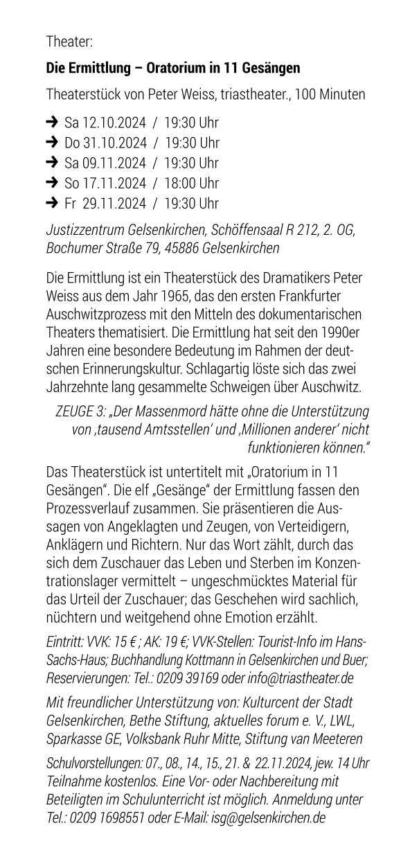 At the presentation of our publication feiga & george. the disappearance of the jewish family zając in vienna at the educational restaurant „Church“ in Essen, we collected a total of € 400. We have now transferred this money to „Standing Together“ in Israel. If you want to know more about what this organisation does, you can read about it here: https://www.standing-together.org/en The magazine Der Spiegel reports as follows: |